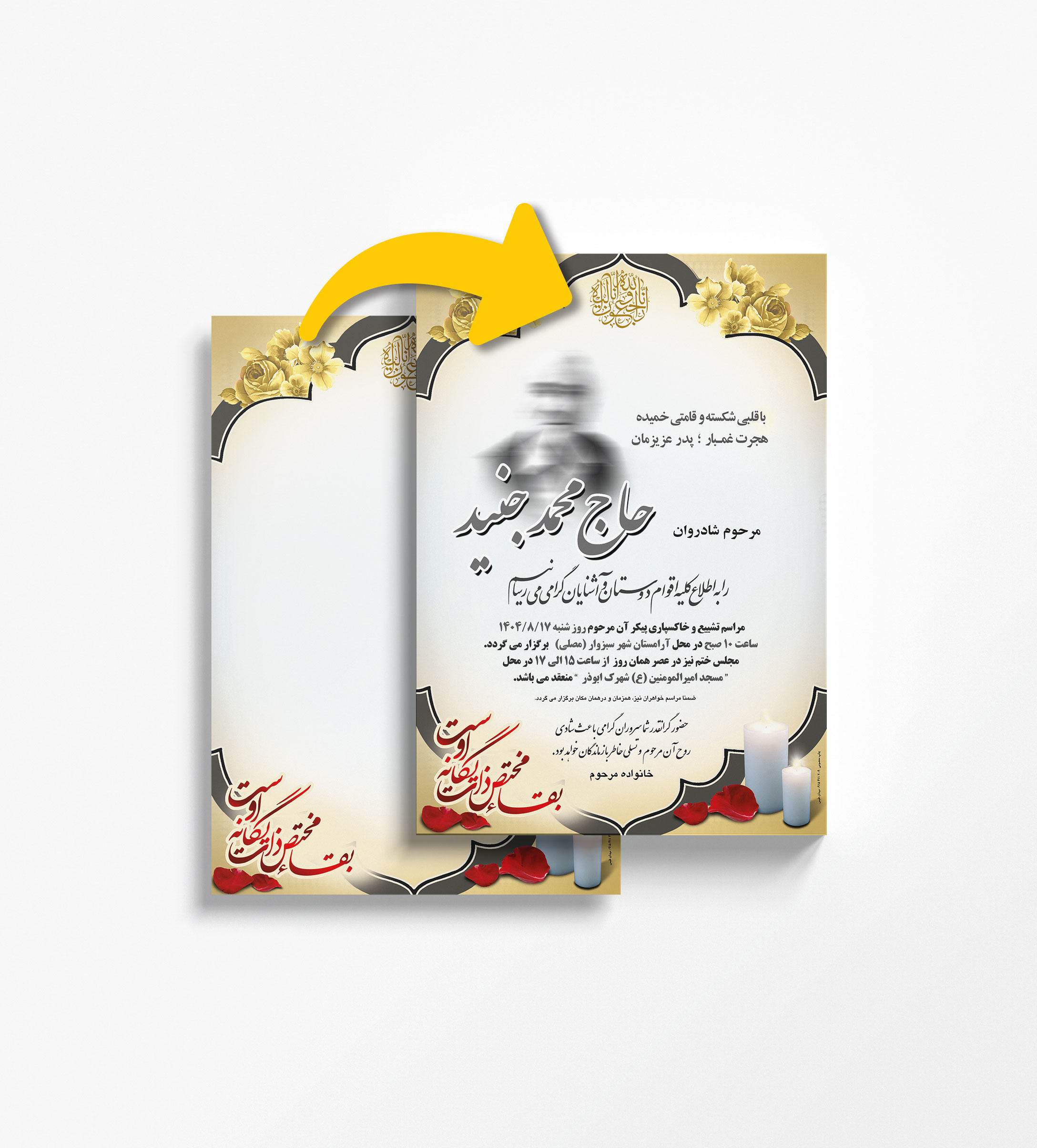 اعلامیه ترحیم A4 + چاپ سیاه سفید